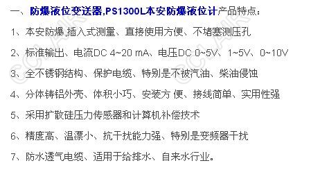 SY-PS1300L-1mH2O-GFM2,SY-PS7300L-1mH2O-GF,PS1300L-1mH2O-GFM2,PS1300L本安防爆液位計