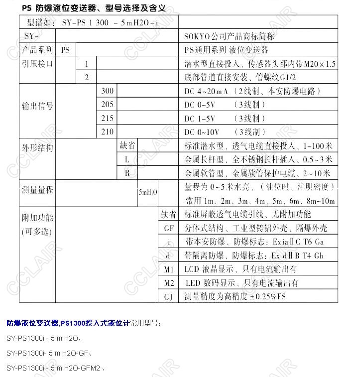 SY-PS1300i-5mH2O,SY-PS1300i-5mH2O-GF,PS1300i-5mH2O,PS1300投入式液位計