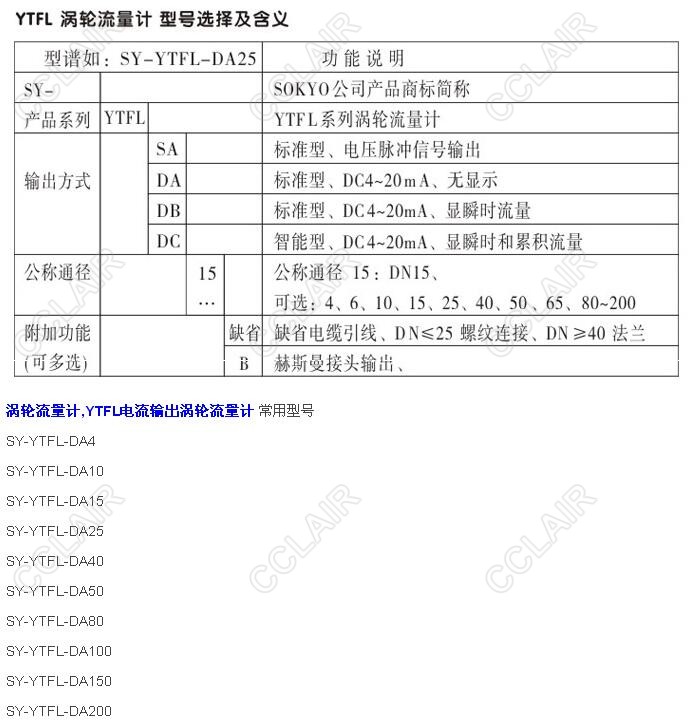 SY-YTFL-DA40,SY-YTFL-DA50,SY-YTFL-DA80,SY-YTFL-DA100,SY-YTFL-DA150,SY-YTFL-DA200