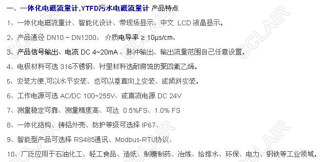 SY-YTFD-F2E25-11GA,SY-YTFD-F2E40-11GA,SY-YTFD-F2E50-11GA,YTFD污水電磁流量計(jì)