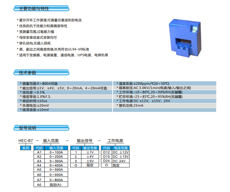 HEC-B7,HEC-B7-A1,HEC-B7-A2,HEC-B7-A3,HEC-B7-A4,HEC-B7-A5,HEC-B7-A6,電流傳感器