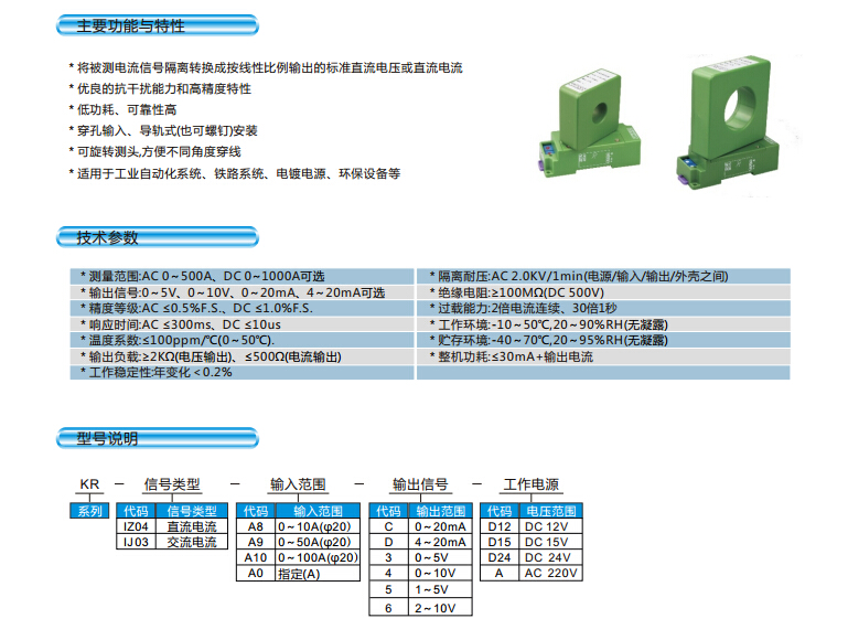 KR-IZ04,KR-IJ03 單相電流隔離變送器(穿孔輸入)