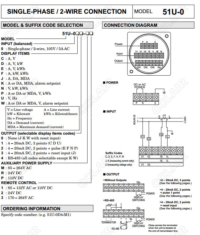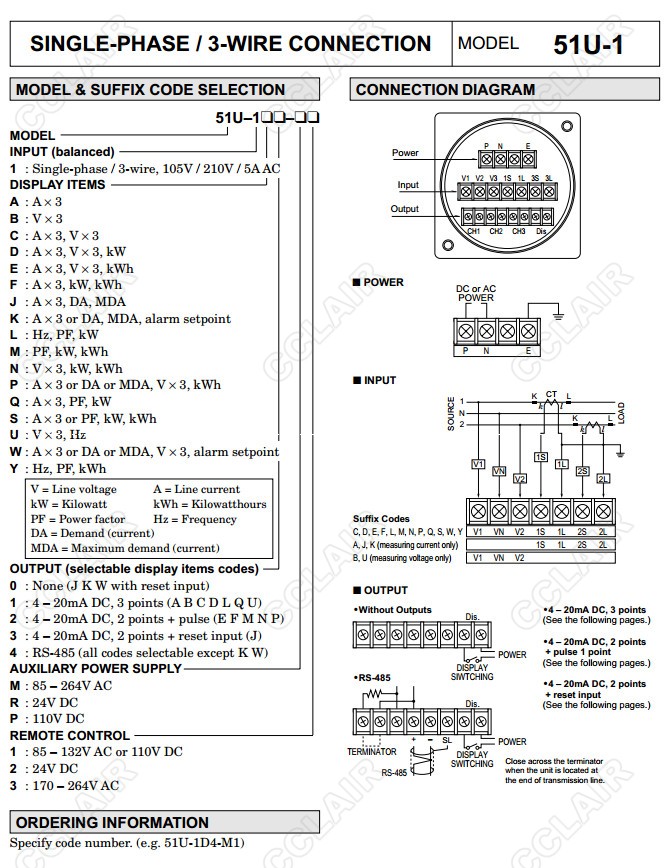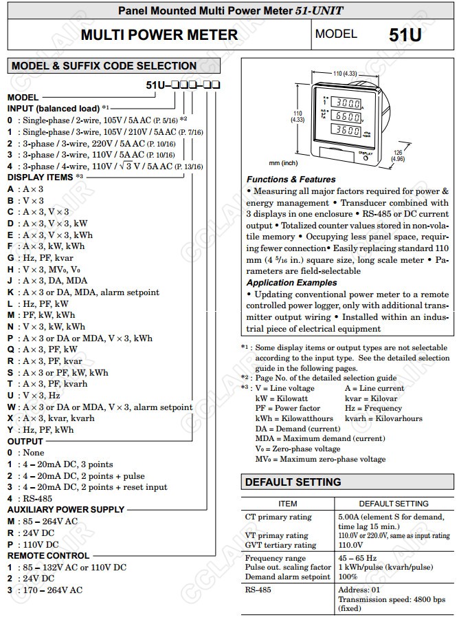 51U,51U-0,51U-1,51U-2,51U-3,51U-4,配電盤嵌入式多功能電量表