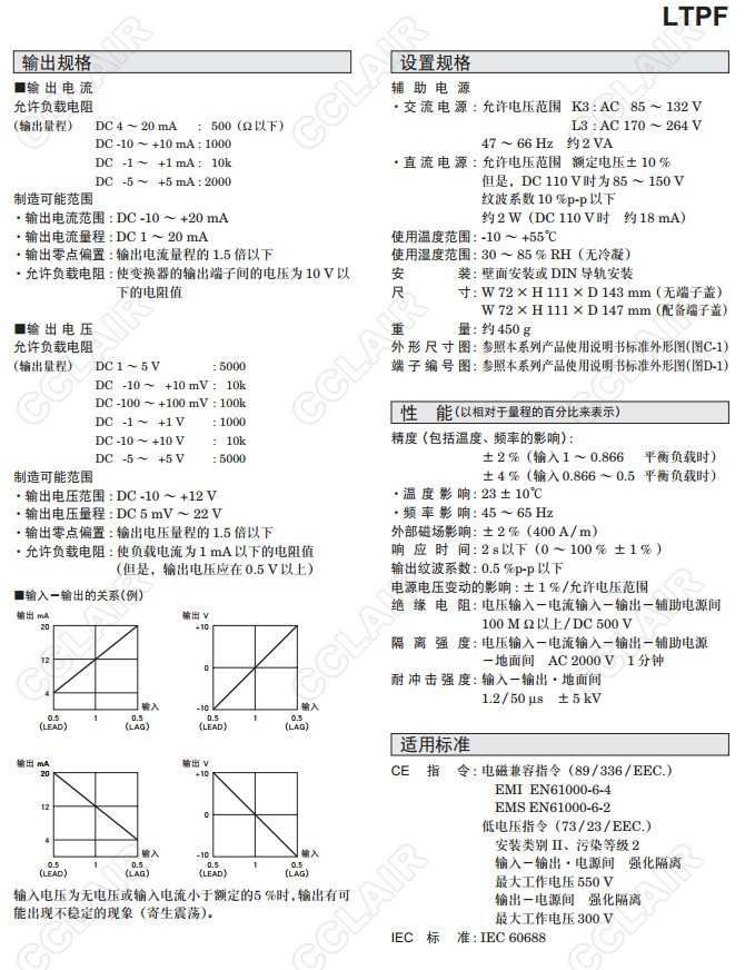 LTPF,LTPF-115PA-R/T,LTPF-11,LTPF-12,LTPF-14,LTPF-41,LTPF-42,功率因數(shù)信號變換器(平衡電路用)
