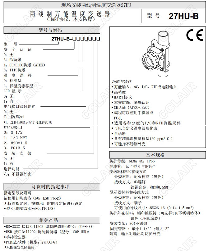 27HU-B,27HU-B-7652,CELENEC隔爆型防爆認(rèn)證 接線盒內(nèi)安裝型萬(wàn)能輸入信號(hào)變換器27HU-B-0,27HU-B-3,27HU-B-4,27HU-B-8,