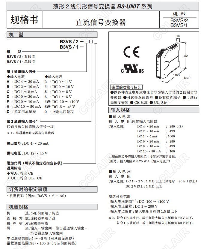 B3VS/1,B3VS/2,B3VS/1-A,B3VS/2-A,B3VS/1-B,B3VS/2-B,B3VS/1-C,直流信號(hào)變換器(單通道、雙通道)B3VS/2-C,B3VS/1-D,B3VS/2-D,B3VS/1-F,B3VS/2-F,B3VS/1-H,B3VS/2-H,B3VS/1-Z,B3VS/2-Z,