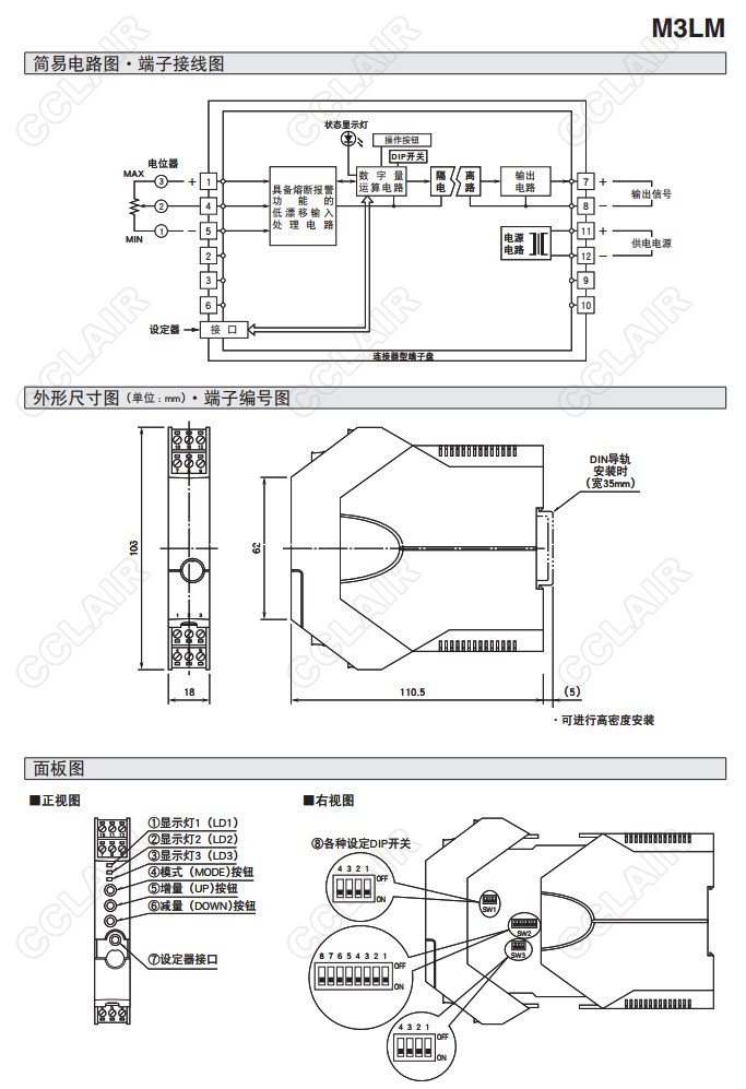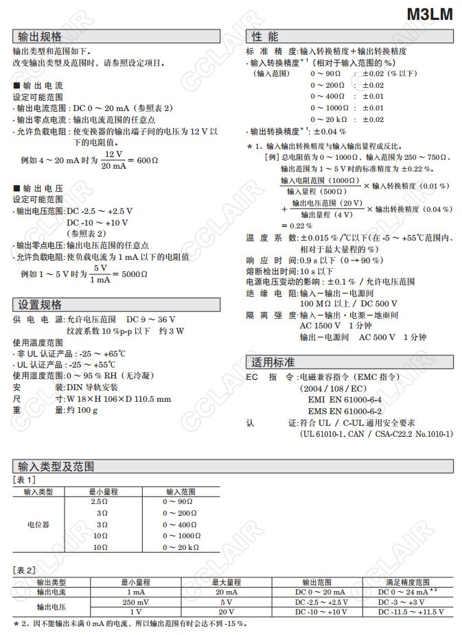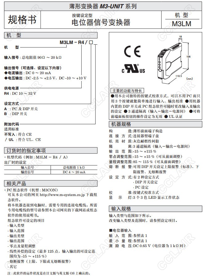 M3LM,M3LM-R4/A,M3LM-R4/B,M3LM-R4/A/UL,M3LM-R4/B/UL,電位器信號(hào)變換器(按鍵設(shè)定型)