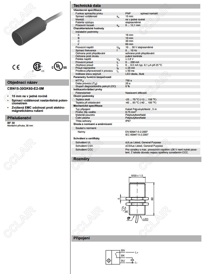 CBN15-30GK60-E2-5M,電容式接近開(kāi)關(guān)