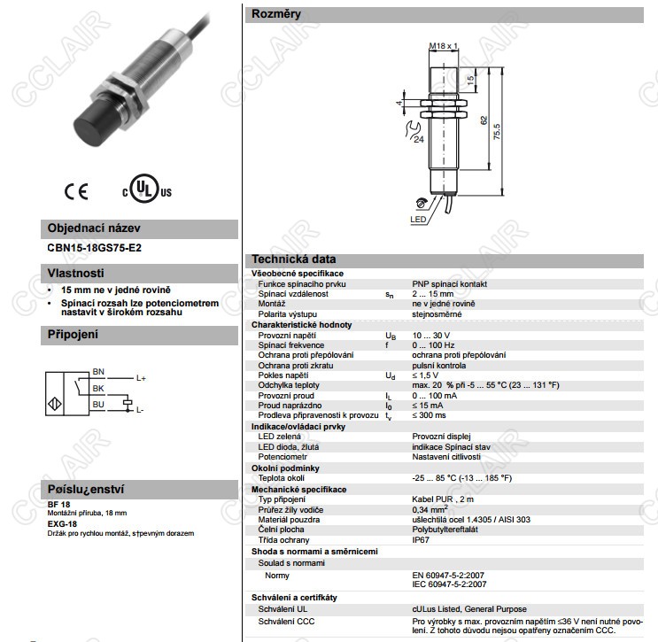 CBN15-18GS75-E2,電容式接近開關(guān)