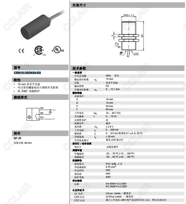 CBN15-30GK60-E0,電容式接近開關(guān)