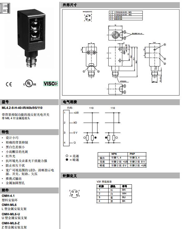 ML4.2-8-H-40-IR/40b/95/110,漫反射型傳感器