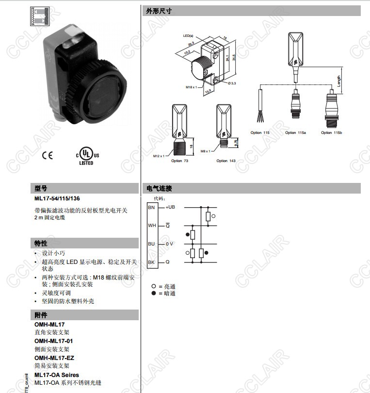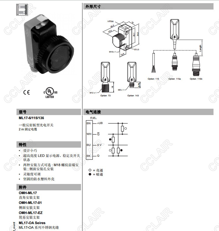 ML17-54/115/136,ML17-6/115/136,反射板型傳感器