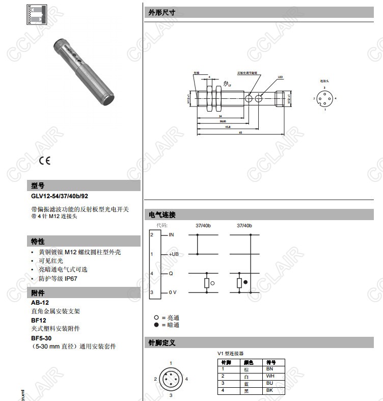 GLV12-54/36/40b/92,GLV12-54/37/40b/92,反射板型傳感器