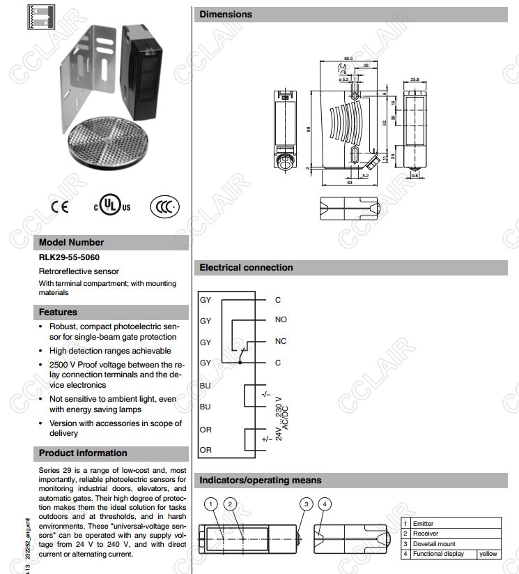 RLK29-55-5060,反射板型傳感器