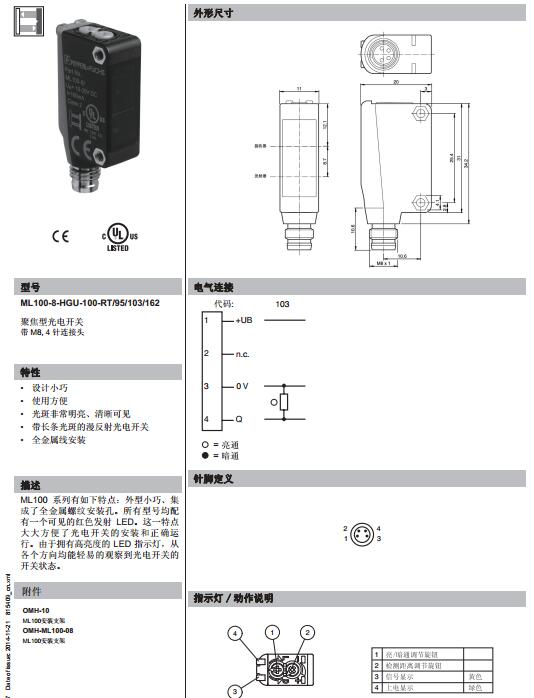 ML100-8-HGU-100-RT/95/103/162,漫反射型傳感器