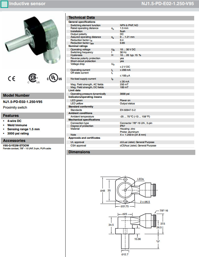 NJ1.5-PD-E02-1.250-V95,NJ2-PD-E02-2.062-V95,NJ2-PD-E02-2.875-V95感應(yīng)式傳感器