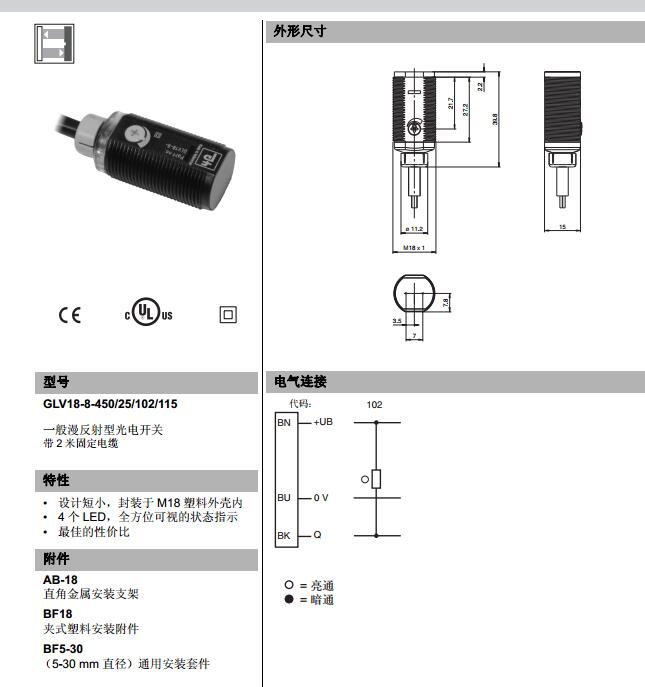 GLV18-8-450/25/102/115,漫反射型傳感器