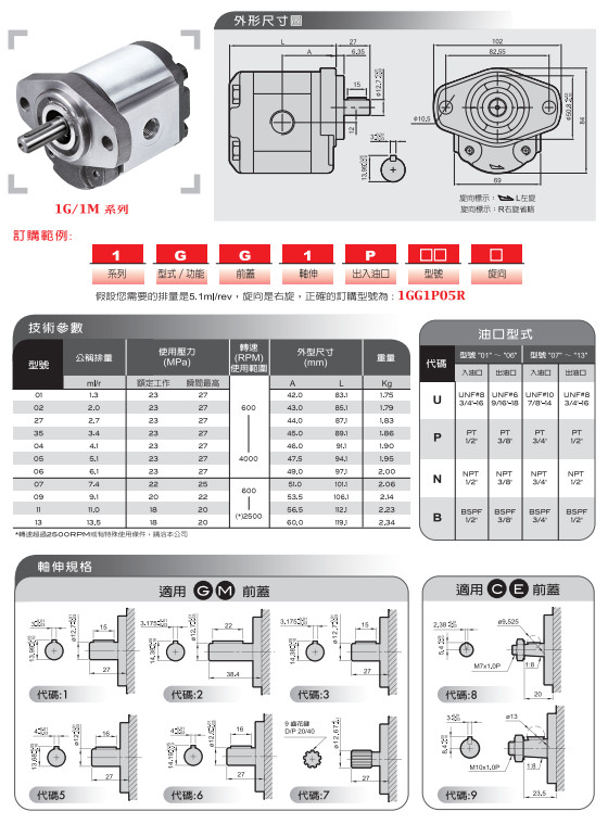 1GG1P01L,1GG1P02L,1GG1P27L,1GG1P35L,HONOR鑄鐵齒輪泵