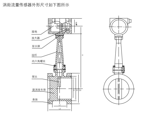 | 渦街傳感器的安裝尺寸 單位:mm | ||||||