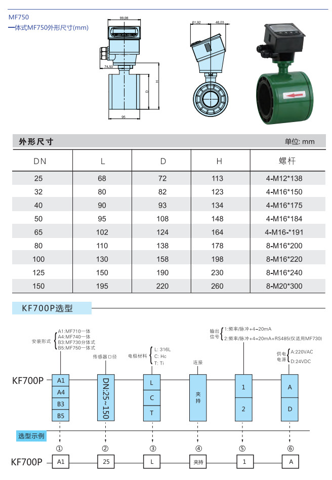 KF700P-B5-25,KF700P-B5-32,KF700P-B5-40,KF700P-B5-50,電磁流量計(jì)