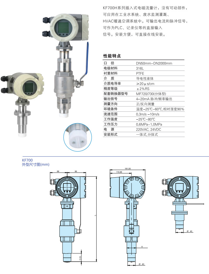 KF700H-A2-200,KF700H-A2-250,KF700H-A2-300,KF700H-A2-350,KF700H-A2-400,插入式電磁流量計(jì)