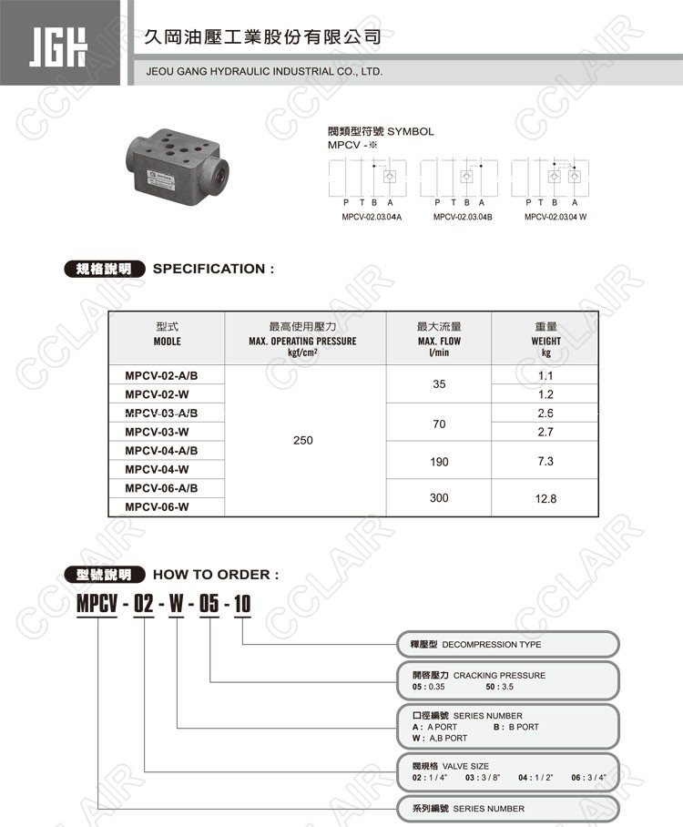 JeouGang臺灣久岡,疊加式液控單向閥MPCV-02-A-05-10,MPCV-02-A-50-10,MPCV-02-B-05-10,MPCV-03-B-50-10,MPCV-03-W-05-10,MPCV-03-W-50-10,MPCV-04-A-05-10,MPCV-04-A-50- 10,MPCV-04-B-05-10,MPCV-06-B-50-10,MPCV-06-W-05-10,MPCV-06-W-50-10
