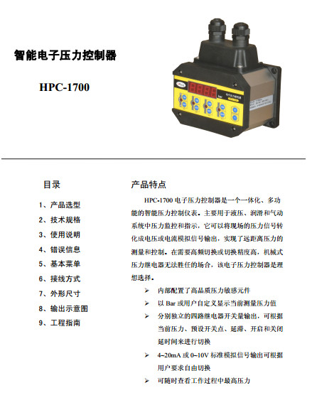 HPC-1700-16,HCP-1700-40,HCP-1700-100,HCP-1700-250,HCP-1700-400,HCP-1700-600智能電子壓力控制器
