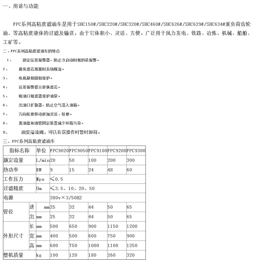 FPC9020,FPC9050,FPC9100,FPC9200,FPC9300,高粘度濾油車