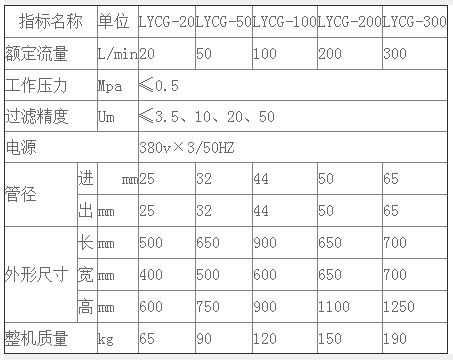 二、JYCG系列多級精密過濾機(jī)技術(shù)參數(shù)表