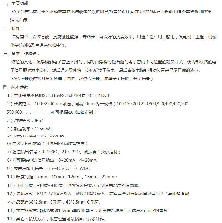XFL-S5-250MM,XFL-S5-100MM,XFL-S5-150MM,XFL-S5-200MM,XFL-S5-300MM,5孔法蘭電流信息油位傳感器