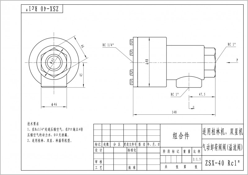 ZSX-40,氣動卸荷閥