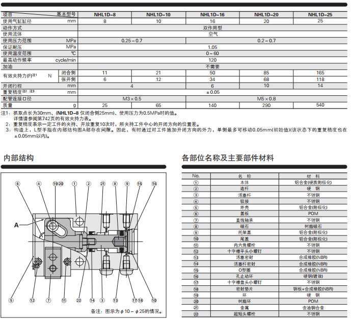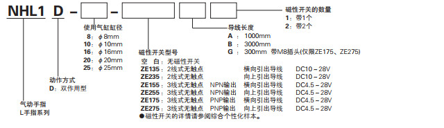 NHL1D-8,NHL1D-10,NHL1D-16,NHL1D-20,NHL1D-25,氣動(dòng)手指--L手指系列