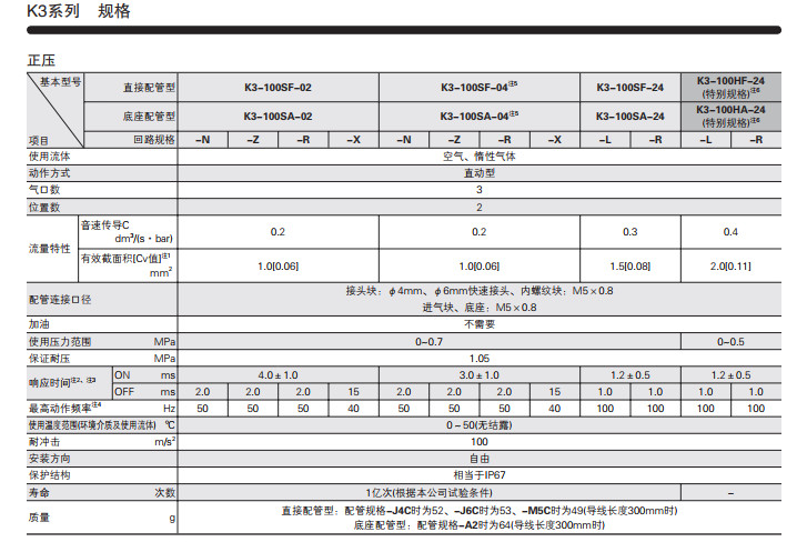 K3-100SF-02-N,K3-100SF-02-Z,K3-100SF-02-R,K3-100SF-02-X,K3-100SF-04-N,高速閥