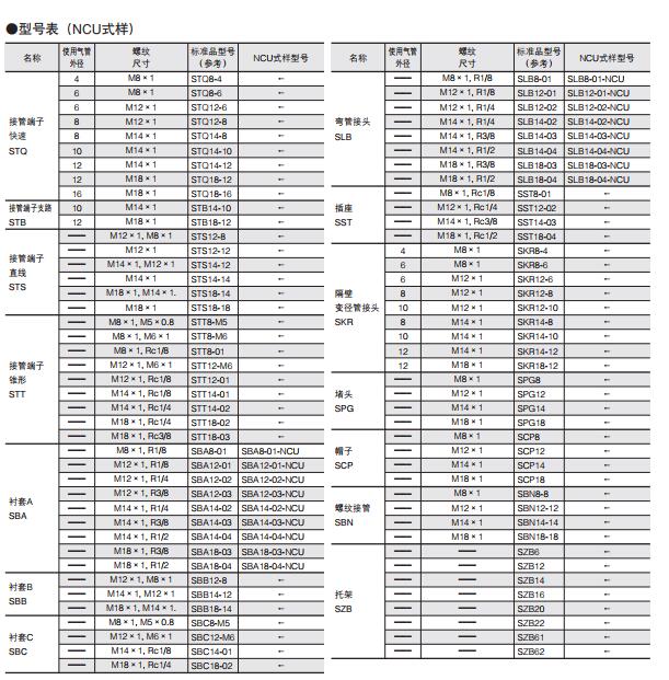 TS6-01M-NCU,TSH4-01M-NCU,TSH6-01M-NCU,TL4-01M-NCU,TL6-01M-NCU,TLL4-01M-NCU,TLL6-01M-NCU,TLV4-01M-NCU TLV6-01M-NCU,TT4-01M-NCU,TT6-01M-NCU,TB4-01M-NCU,TB6-01M-NCU