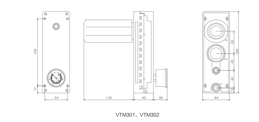 | VTM301 | 4~6 | 92 | 380 | 120~160 | φ6 | φ12 | φ12 |