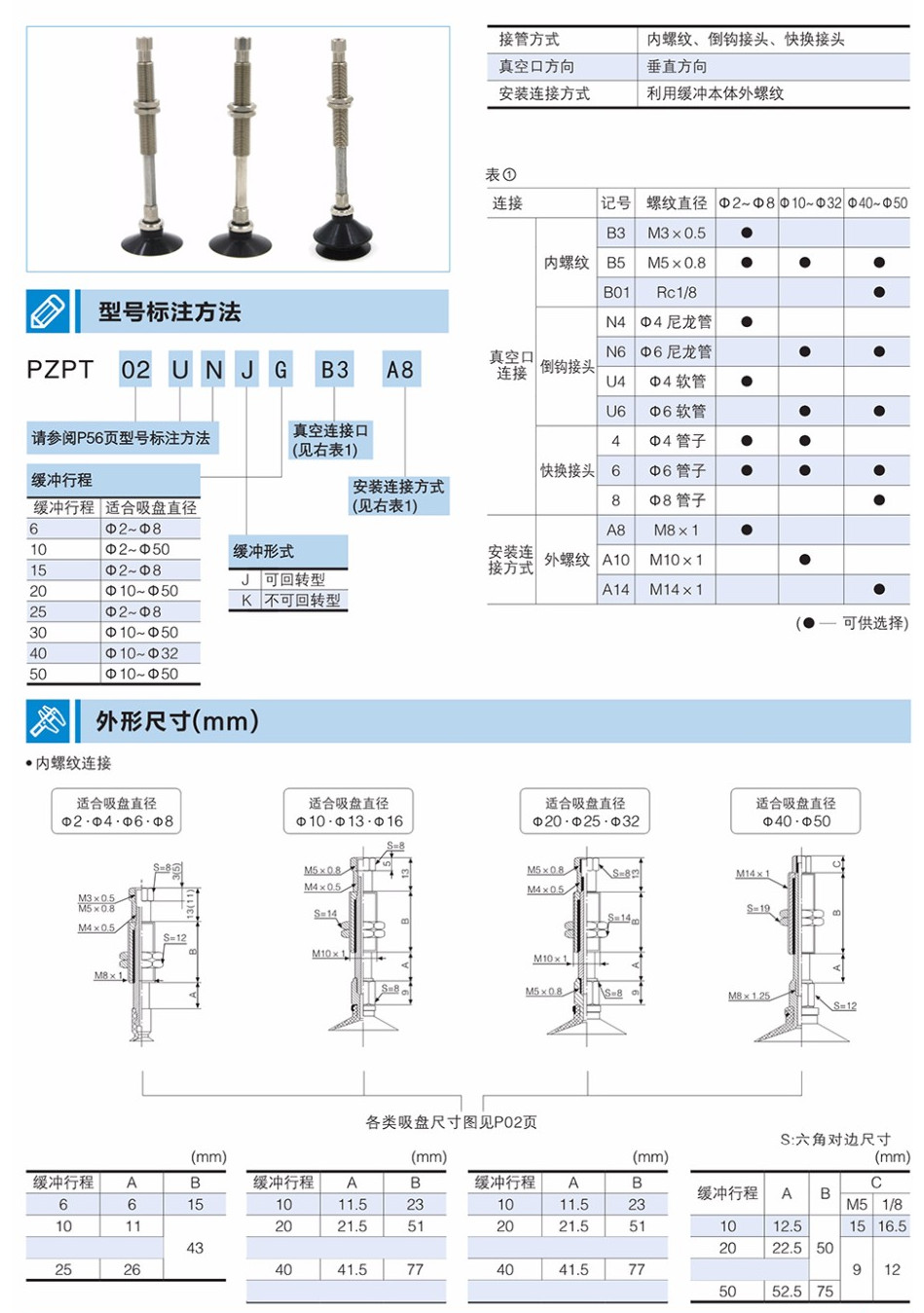 PZPT2-J-6-B3-A8,PZPT2-J-6-B5-A8,PZPT2-J-6-N4-A8,垂直真空口帶緩沖吸盤組