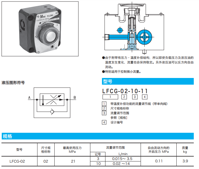 LFCG-02-3-11,LFCG-02-10-11,LFCG帶溫度補償功能的流量調(diào)節(jié)閥(帶單向閥)