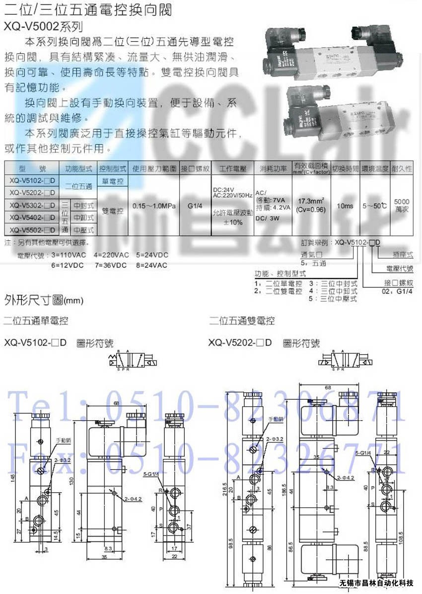 XQ-V5502-4D,XQ-V5502-5D,XQ-V5502-6D,XQ-V5502-7D,XQ-V5502-8D,二位/三位五通電控?fù)Q向閥