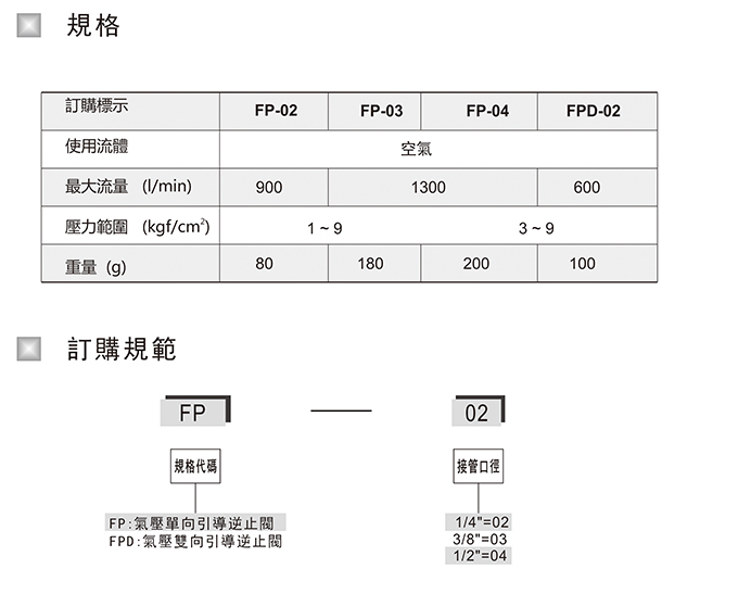 引導(dǎo)逆止閥FP-02,FP-03,FP-04,FPD-02