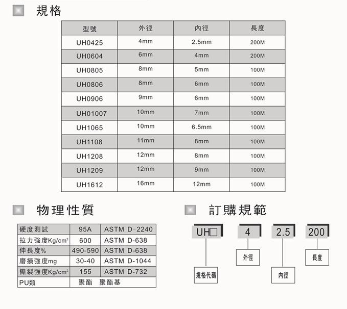 PU管 UH0425,UH0604,UH0805,UH0806,UH0906,UH01007,UH1065,UH1108,UH1208,UH1209,UH1612