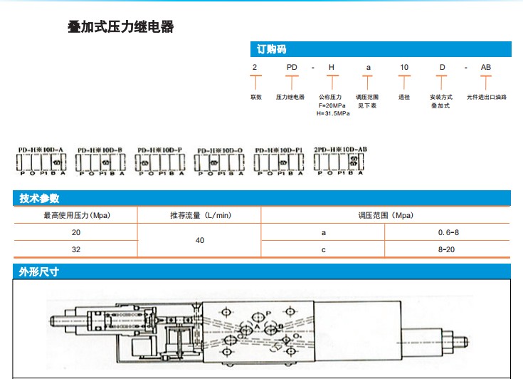 PD-Ha10D-A,PD-Ha10D-B,PD-Hc10D-P1,2PD-Hc10D-AB,疊加式壓力繼電器