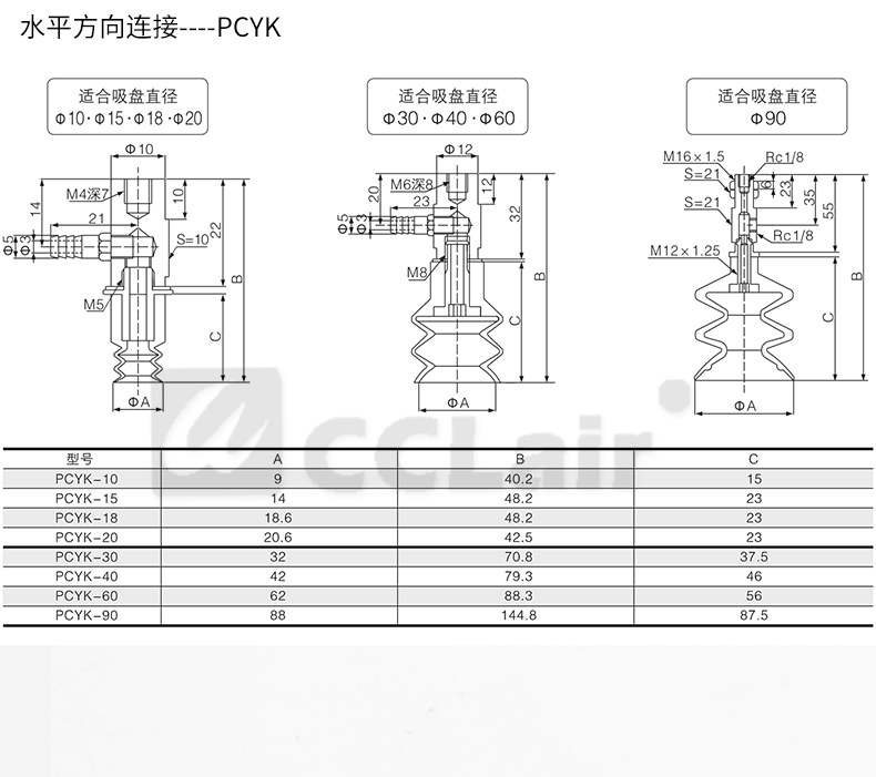 三段式吸盤固定式金屬帶倒鉤接頭PCYK-10,PCYK-15,PCYK-18,PCYK-20,PCYK-30,PCYK-60,PCYK-90,