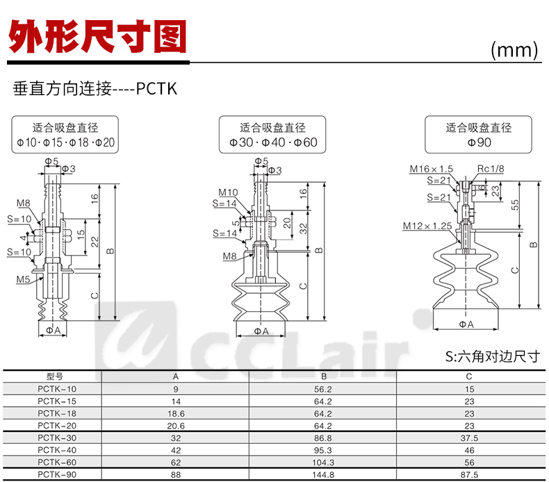 三段式吸盤固定式金屬帶倒鉤接頭PCYK-10,PCYK-15,PCYK-18,PCYK-20,PCYK-30,PCYK-60,PCYK-90, PCTK-10,PCTK-15,PCTK-18,PCTK-20,PCTK-30,PCTK-60,PCTK-90