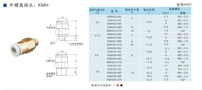 SMC型外螺直接頭KMH23-M3,KMH03-M3,KMH23-M5,KMH03-M5,KMH23-01S,KMH03-01S,KMH04-M3,KMH04-M5,KMH04-M6,KMH04-01S,KMH06-M5,KMH06-M6,KMH06-01S,