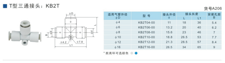 SMC型T型三通接頭KB2T04-00,KB2T06-00,KB2T08-00,KB2T10-00,KB2T12-00,KB2T16-00,