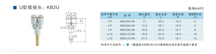 SMC型U型插接頭KB2U04-99,KB2U06-99,KB2U08-99,KB2U10-99,KB2U12-99,KB2U16-99,