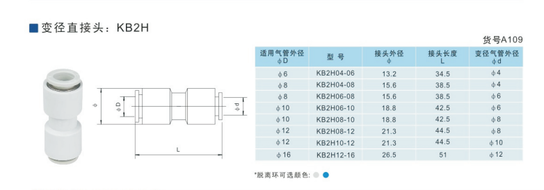 SMC型變徑直接頭KB2H04-06,KB2H04-08,KB2H06-08,KB2H06-10,KB2H08-10,KB2H08-12,KB2H10-12,KB2H10-16,KB2H12-16,