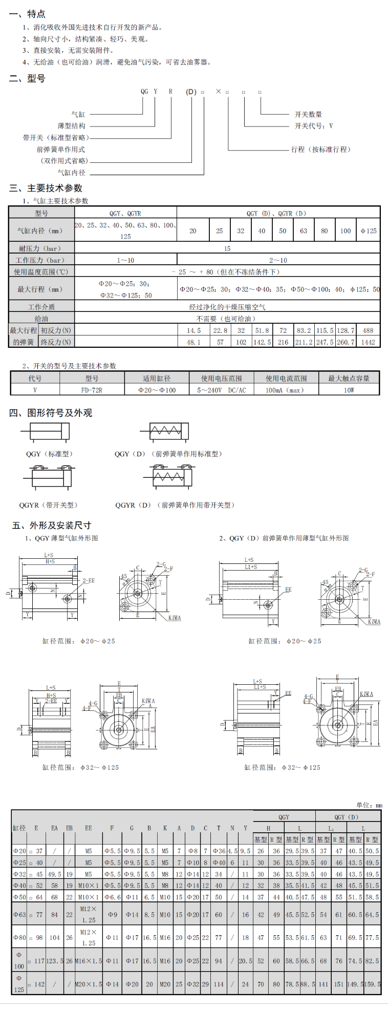QGY100*30 QGY100*50 QGY80*30 QGY80*60 薄型氣缸