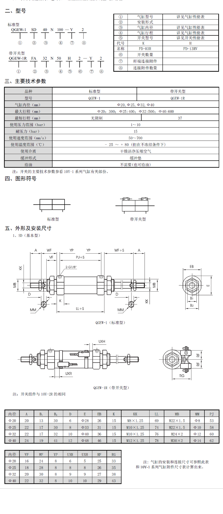 QGEW-1無給油潤滑雙活塞桿氣缸