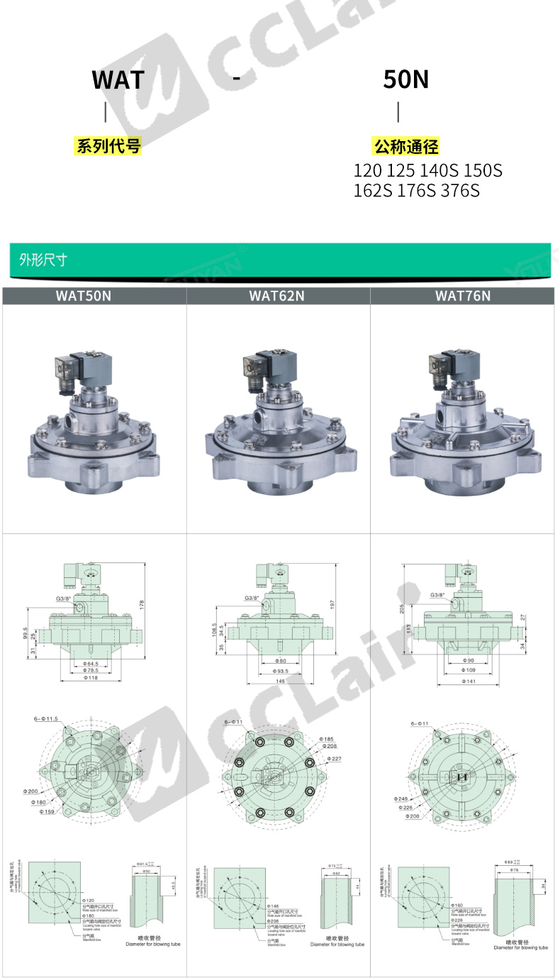 MD120,WAT50N,MD125,WAT62N,華能型直角式脈沖閥